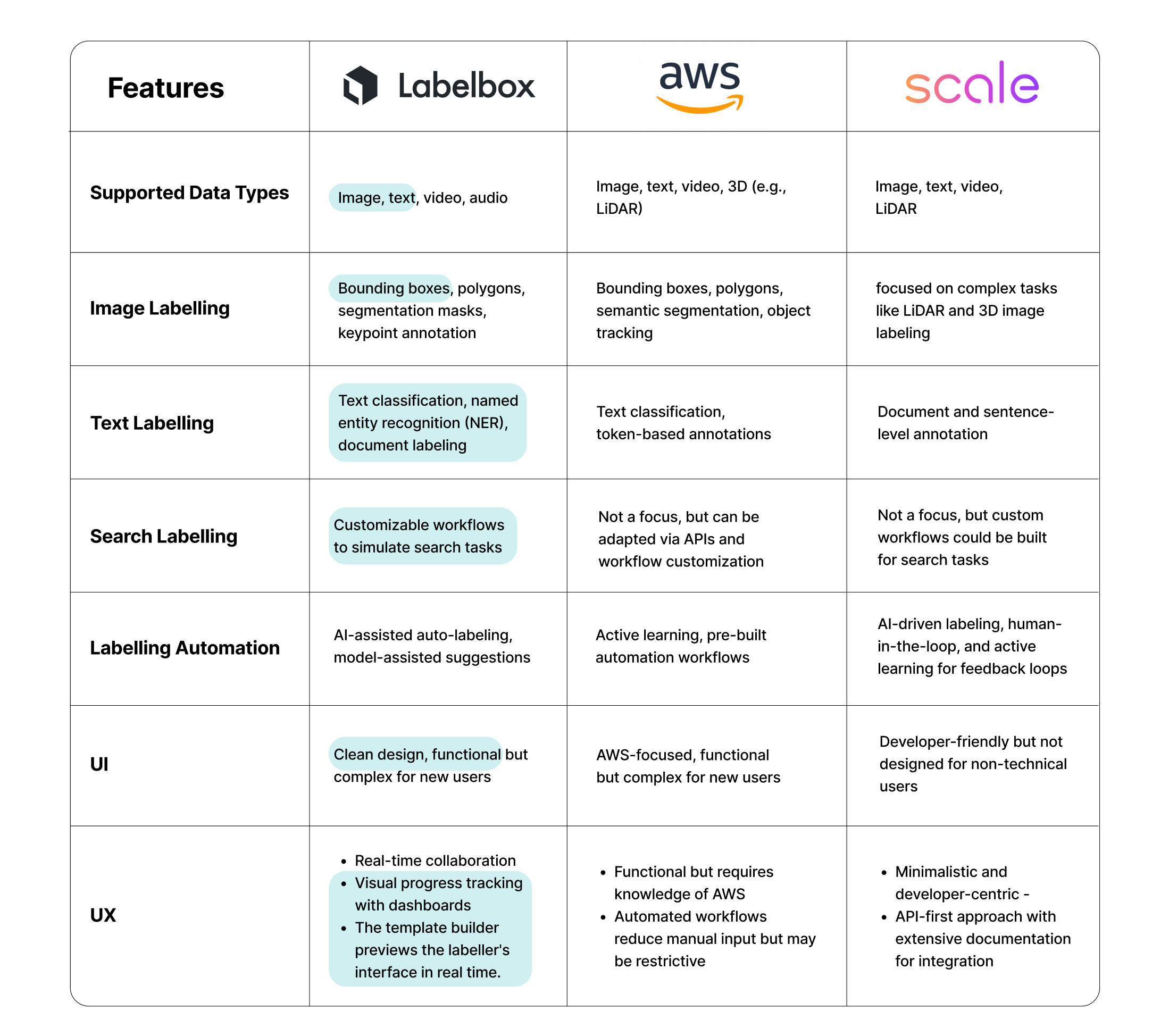 Through our research, we found that Labelbox has a feature set that’s pretty aligned with what we’re aiming for. Conversations with our client and stakeholders also highlighted them as a major competitor.