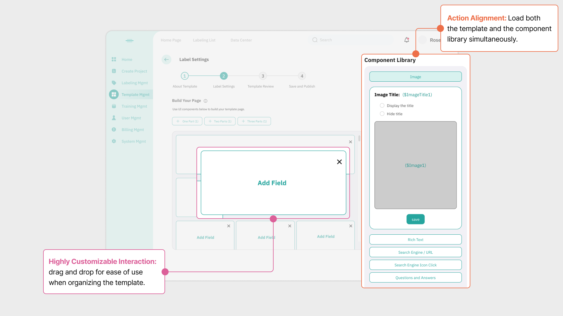 Based on their product, we identified ways to simplify the user experience for newcomers while keeping the advanced functionalities we need, like real-time label previews and support for different formats like images, text, and search labels.