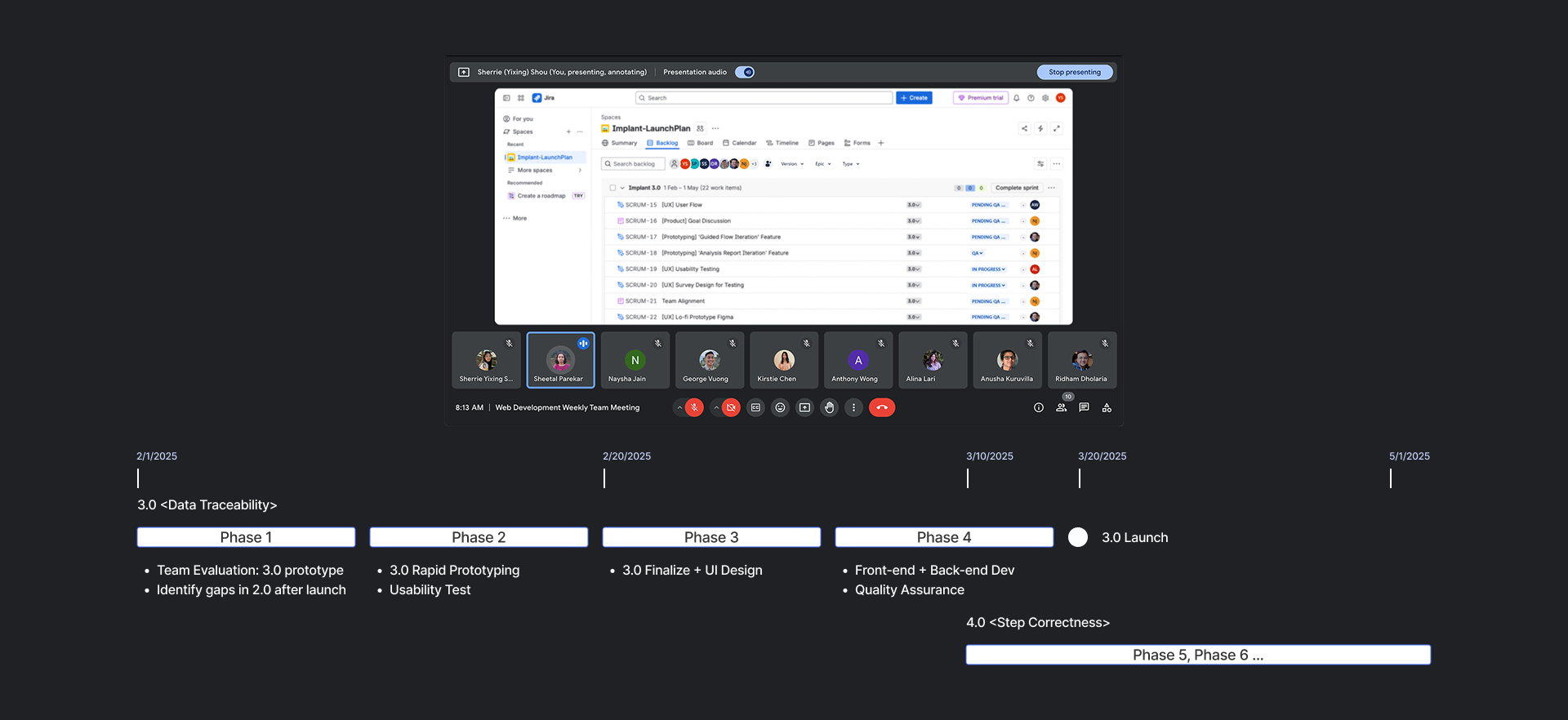 To move the design from concept to production, we collaborated with cross-functional teams to define a phased launch plan.The roadmap aligns design, engineering, and testing efforts, ensuring that each release is validated before moving to the next stage.This phased approach allows the team to ship incrementally, incorporate real user feedback, and reduce risk in a high-stakes research environment.