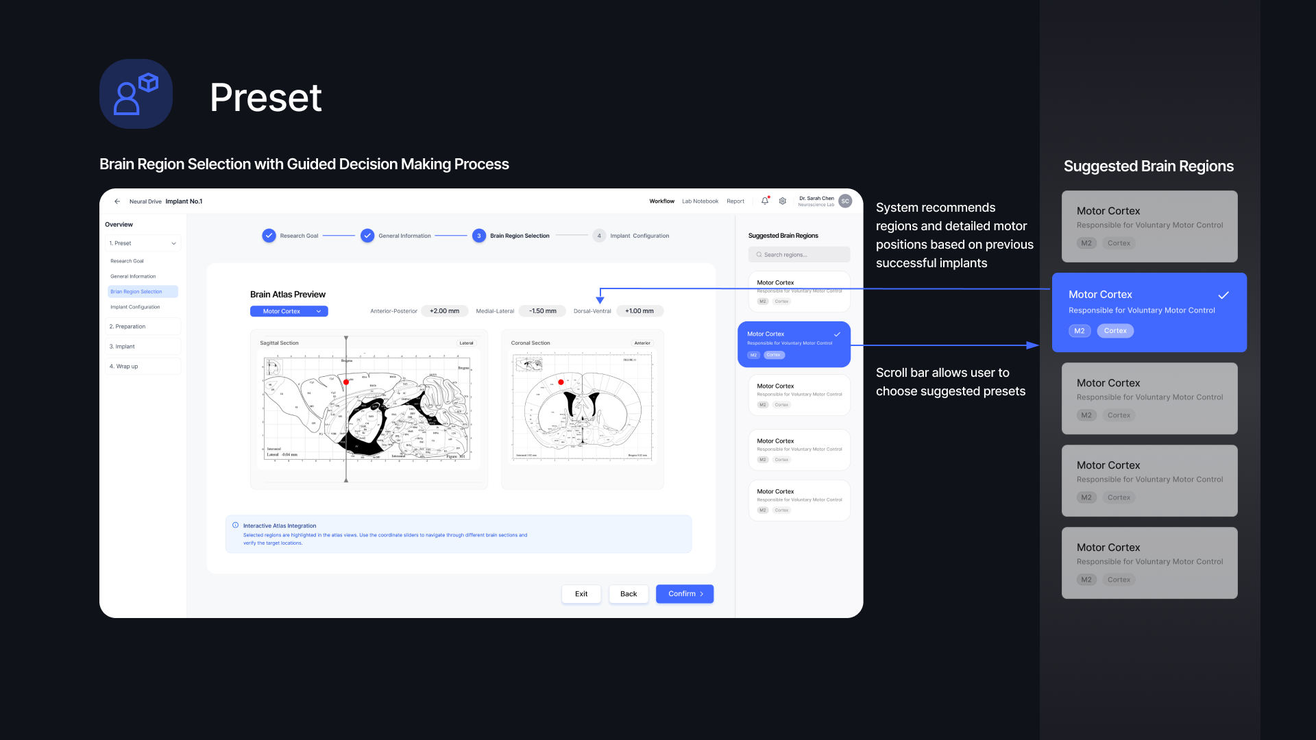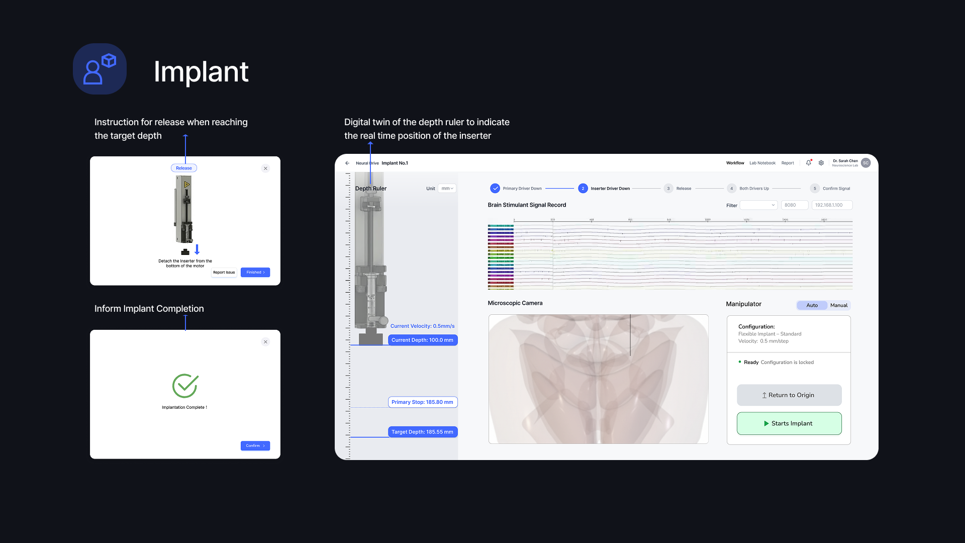 Design a guided, novice-friendly implantation interface that enables researchers to perform complex mouse brain neural implantation with greater confidence, consistency, and precision.
