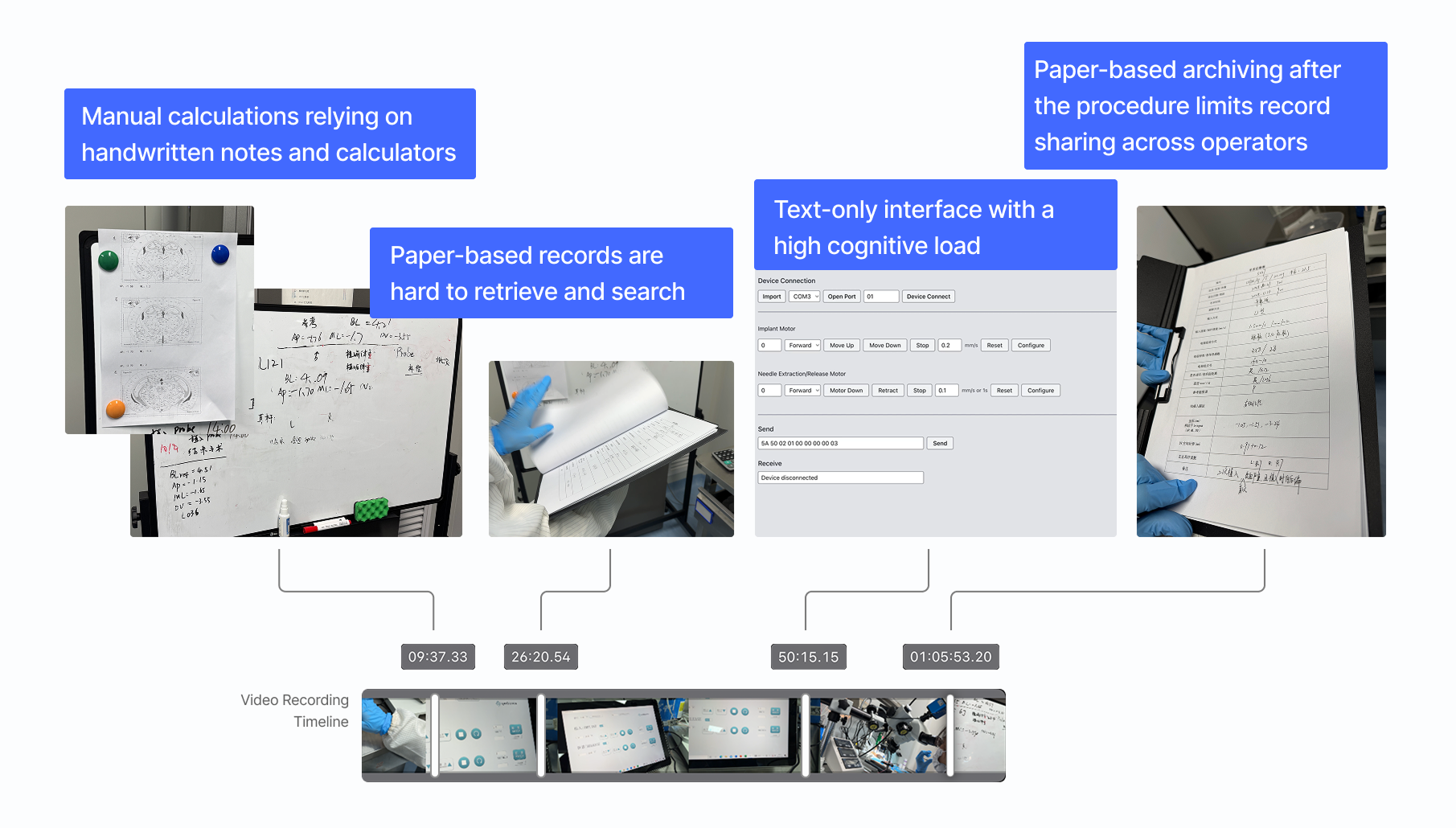 Across multiple procedures, we identified recurring friction points in the current workflow. These issues place heavy memory and attention demands on researchers, especially those with less experience.