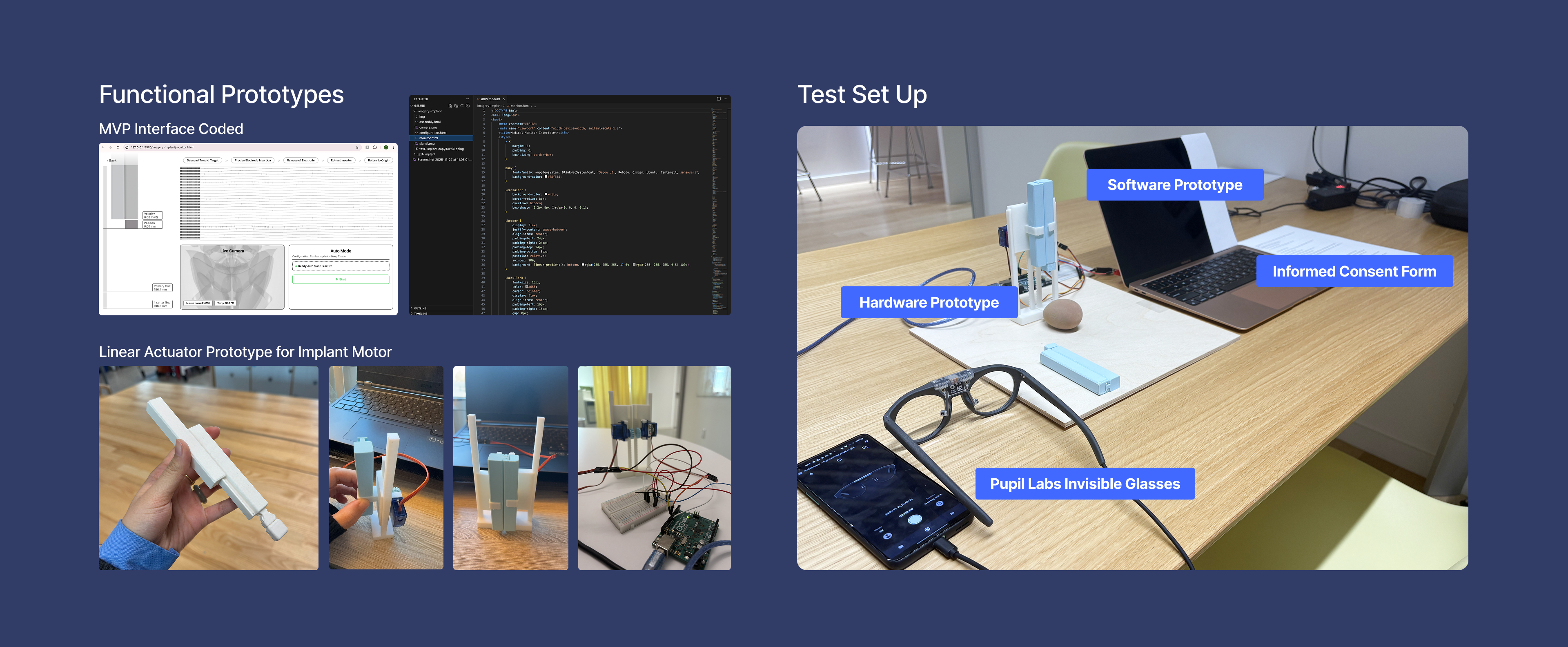 To simulate the physical behavior of the implantation system, we built a linear actuator prototype for the implant motor. We connected hardware inputs directly to the software interface, allowed precise control of movement and depth during tasks. This setup ensured that software decisions were grounded in physical interaction, not abstract simulations.