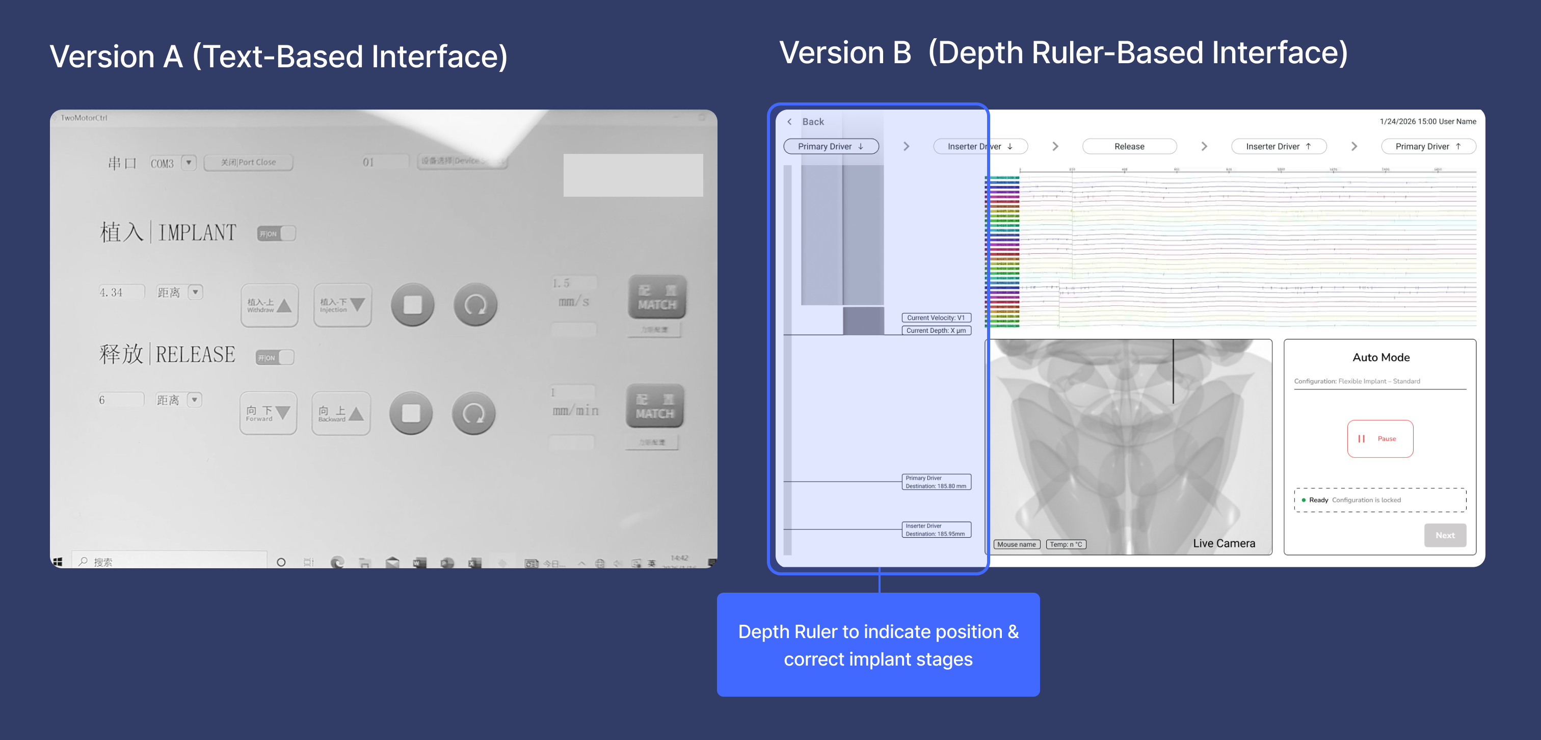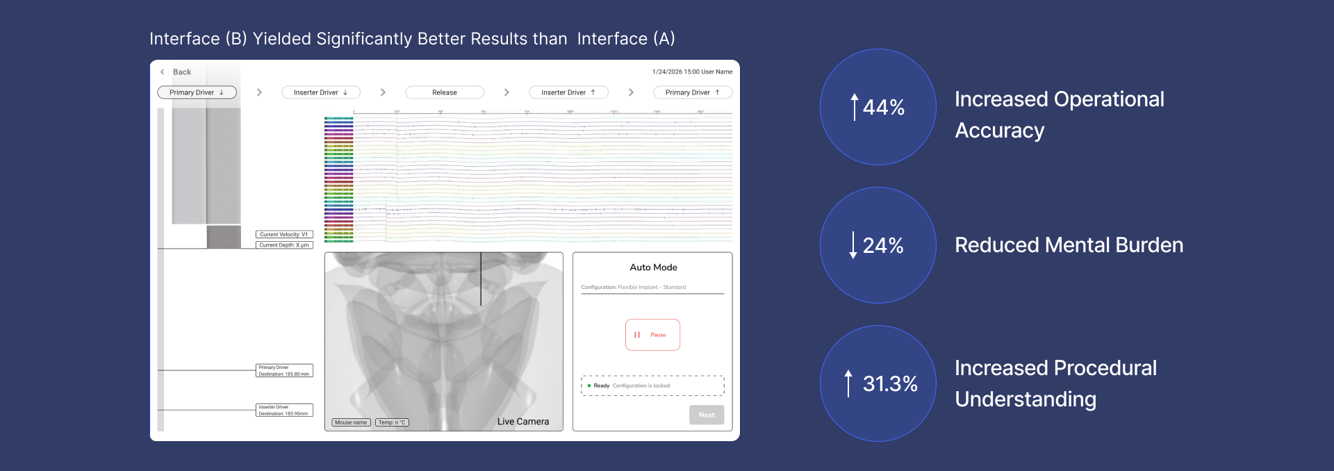 By making system state and procedural progress visible at a glance, the redesigned interface reduced guesswork and supported more confident decision-making during implantation.